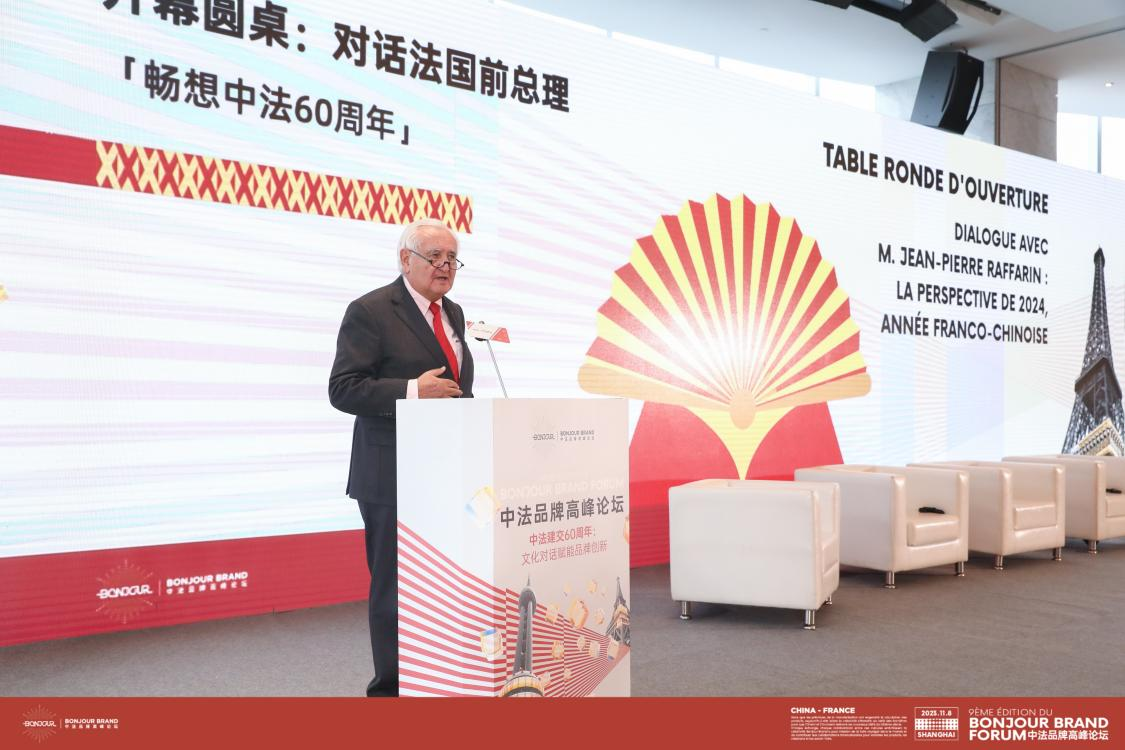 圖:法國前總理、法國展望與創(chuàng )新基金會(huì )主席讓-皮埃爾·拉法蘭出席第九屆中法品牌高峰論壇