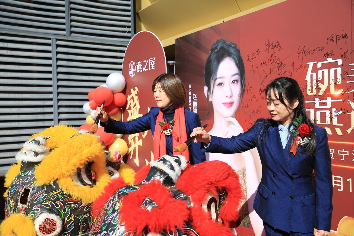 致辭結束后,現場(chǎng)領(lǐng)導與嘉賓上臺剪彩,一同剪下手中的金色綢帶,掀開(kāi)燕之屋寧波慈溪旗艦店的嶄新篇章。隨著(zhù)金剪開(kāi)剪,彩帶飄揚、祥獅吐瑞,燕之屋寧波慈溪旗艦店正式啟幕。開(kāi)業(yè)盛典上,鼓聲響起,獅頭威武雄壯、獅身矯健剛勁,為開(kāi)業(yè)典禮增添了壯麗氣勢,賦予新店無(wú)限希望與活力。在現場(chǎng)來(lái)賓的見(jiàn)證下,兩位領(lǐng)導共同為燕之屋寧波慈溪旗艦店進(jìn)行了點(diǎn)睛儀式。