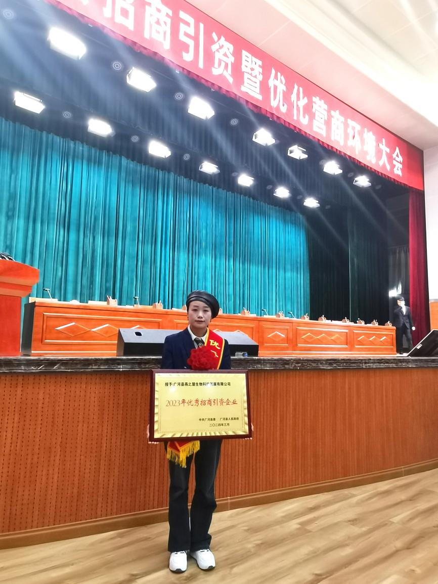 廣河縣燕之屋生物科技發(fā)展有限公司被評為“2023年優(yōu)秀招商引資企業(yè)”