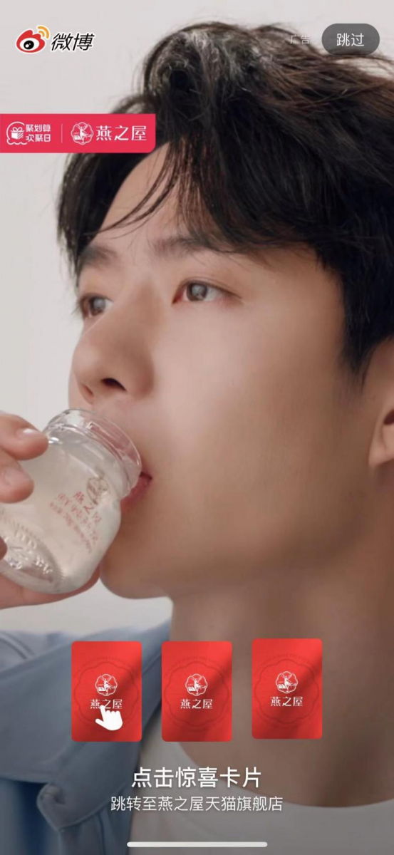 5月20日,燕之屋官宣王一博成為全球品牌代言人,全新品牌代言TVC大片同步釋出,由王一博鮮活開(kāi)啟燕之屋520“鮮”愛(ài)自己計劃。官宣當日,燕之屋與王一博于微博發(fā)布官宣博文,同時(shí)微博上線(xiàn)官宣開(kāi)屏廣告,話(huà)題#王一博燕之屋全球品牌代言人#沖上微博熱搜。