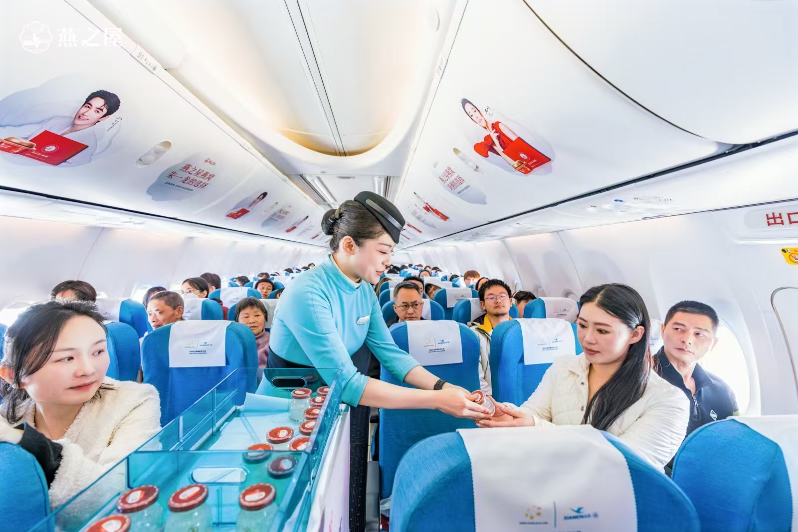 燕之屋與廈門航空打造的婦女節(jié)主題航班由廈門起飛,前往北京。登機前,節(jié)日氣息就已從登機口蔓延開來。燕之屋在登機口設置品牌展區(qū),邀請旅客拍照打卡,并派送燕之屋燕窩肽蘇打水,溫暖開啟活動的首波福利,陪伴旅客愉快登機。